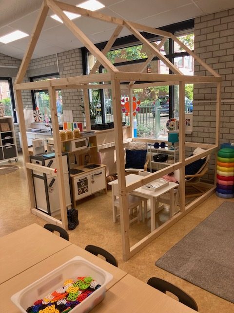 Een instroomgroep opstarten vraagt tijd en organisatie. Mijn belangrijkste tip: begin met een duidelijke to-do-lijst. Bepaal welke taken echt nú moeten en welke kunnen wachten. En kijk vooral welke taken je kunt verdelen over collega’s, je hoeft het niet alleen te doen. Zelf schakelde ik naast collega’s mijn eigen netwerk in. Ik wilde graag een houten huisje in de groep als huishoek… en laat ik toevallig een timmerman als broer hebben!