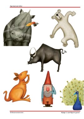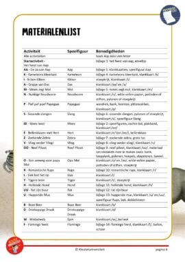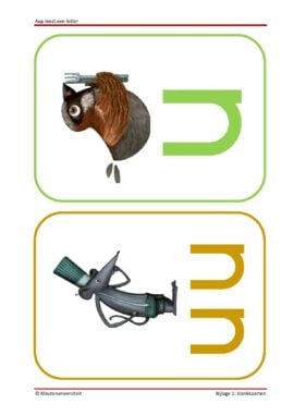 Print voordat je start met de activiteiten de klankkaarten uit bijlage 1 en de speelfiguren uit bijlage 2. Kies een duidelijk zichtbare plek waar je de klankkaarten ophangt na het aanbieden van een klank. Knip de speelfiguren uit, lamineer deze en bevestig de figuren met een punaise op een houten blokje, zodat ze kunnen staan. Wanneer je van tevoren weet welke klanken je wel en niet gaat aanbieden, kun je ervoor kiezen om alleen deze klankkaarten en speelfiguren af te drukken. Een overzicht van de benodigde speelfiguren vind je in de materialenlijst.