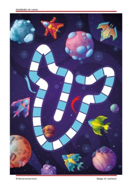 Dit pakket bevat twaalf sets actiebladen in het thema de ruimte, waarbij kinderen handelend bezig zijn en actief aan de slag gaan met activiteiten rondom kleuren, meten, getallen, letters, motoriek en meer.