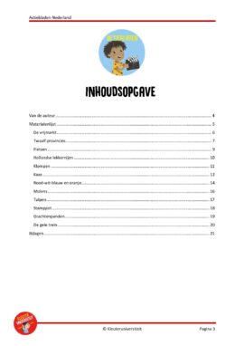 Dit pakket bevat twaalf sets actiebladen met het thema Nederland, waarbij kinderen handelend bezig zijn en actief aan de slag gaan met activiteiten rondom kleuren, meten, getallen, letters, motoriek en meer.