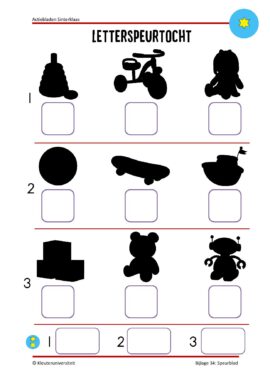 De kinderen bij mij in de klas houden enorm van speurtochten door de lokalen, dus ook de letterspeurtocht uit dit pakket was favoriet. Met het speurblad lopen ze door de ruimte om op zoek te gaan naar de opgehangen speelgoedkaarten. Hebben ze een kaart gevonden? Dan mogen ze de bijbehorende letter opschrijven. Een activiteit die voor alle kinderen leuk is. Je kunt er voor kiezen om alleen de gevonden letters op te laten schrijven, maar kinderen die al wat meer uitdaging nodig hebben kunnen bijvoorbeeld ook al een woord opschrijven.