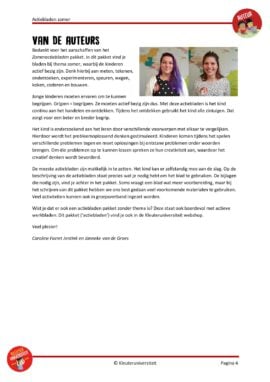 Wat een fantastisch pakket om te gebruiken gedurende de zomerperiode! Actiebladen zijn zeker iets anders dan werkbladen en zetten de kinderen aan tot spelenderwijs leren. Wij hebben de bladen gebruikt bij de groepen 1, 2 en 3. Dit kan, omdat alle actiebladen verschillende niveaus kennen. De kinderen hebben genoten en wilden tijdens het thema “zomer” elke dag kastelen bouwen met klei en cocktailprikkers. Ook alle andere actiebladen vielen in de smaak!