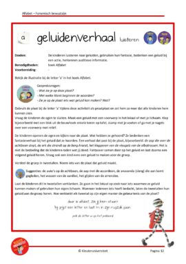 Het nieuwe boek werd Alfabet, een ontzettend gaaf boek vol illustraties bij iedere letter van het alfabet. Met dit boek zag ik veel mogelijkheden op het gebied van taal: letters, klanken, rijmen, woorden en zinnen, auditieve analyse en synthese. De inspiratie bleef maar komen met als resultaat een pakket boordevol activiteiten rondom het fonologisch en fonemisch bewustzijn, die kinderen voorbereiden op het leren lezen.