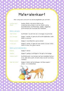De iconen geven de stappen van de activiteit aan. Deze lopen op in moeilijkheid. Bepaal aan de hand van het niveau van de groep tot welk niveau je gaat. Op de bijgevoegde materialenkaart vind je een handig overzicht van de benodigdheden per activiteit. Print de bijlagen, knip deze uit en lamineer ze zo nodig.