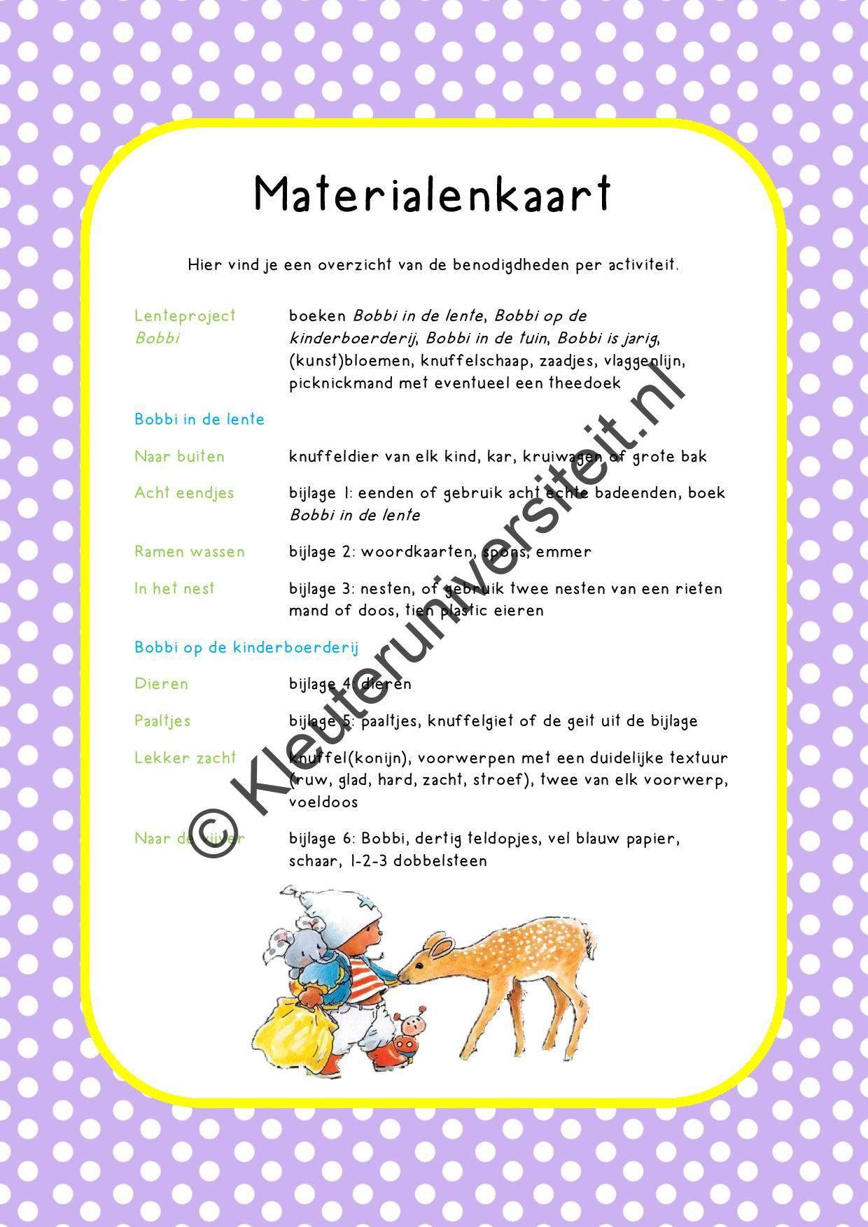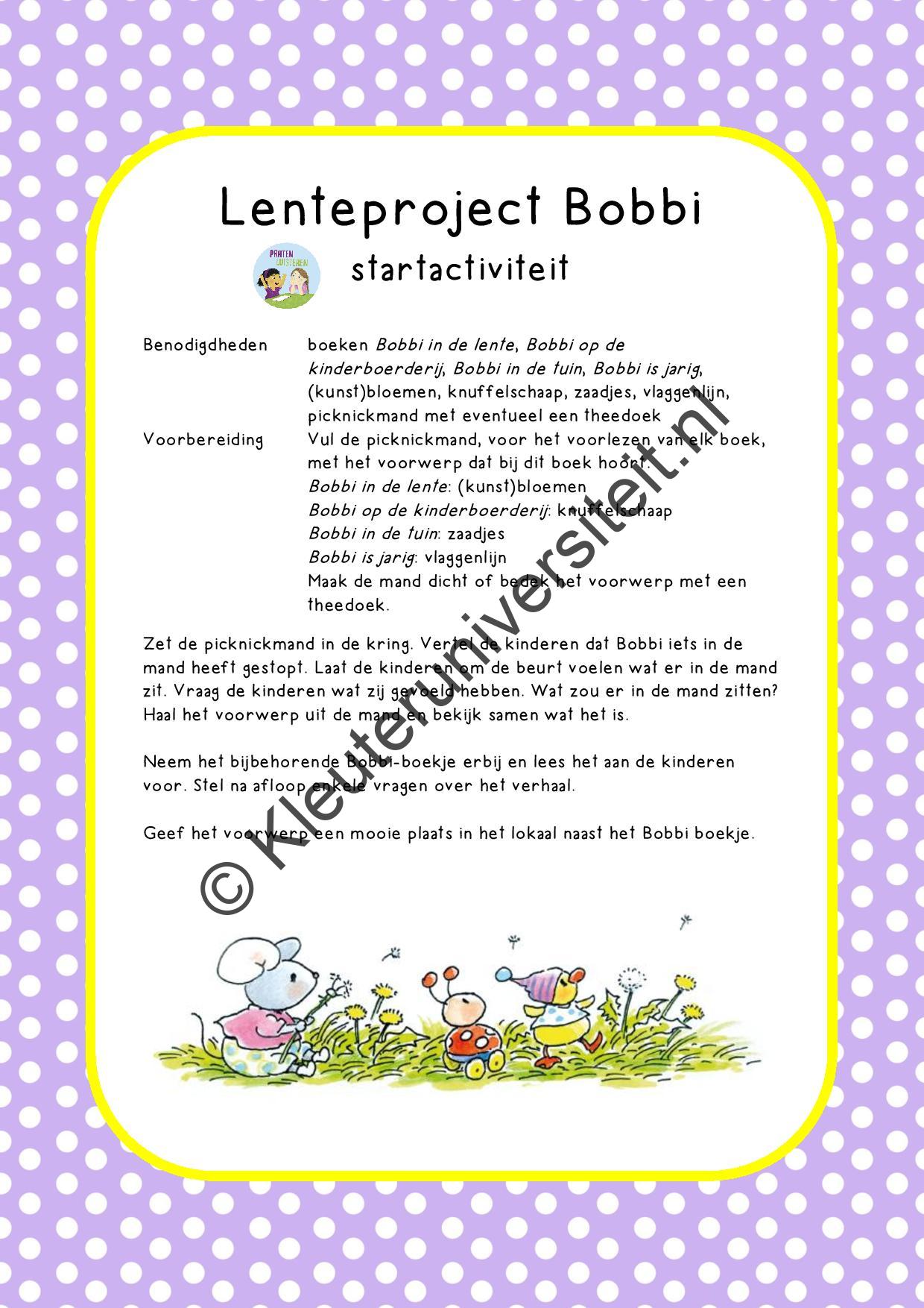 Vier het voorjaar met Bobbi op de peuterspeelzaal of het kinderdagverblijf! Dit vrolijke pakket bevat speelse en beweeglijke kringactiviteiten voor jonge kinderen bij de boeken ‘Bobbi in de lente’, ‘Bobbi op de kinderboerderij’, ‘Bobbi in de tuin’ en ‘Bobbi is jarig’ van Ingeborg Bijlsma en Monica Maas. KAMELEON projecten zijn te gebruiken op de peuterspeelzaal, in de eerste kleuterklas, het asielzoekerscentrum, het speciaal (basis)onderwijs of op het kinderdagverblijf.