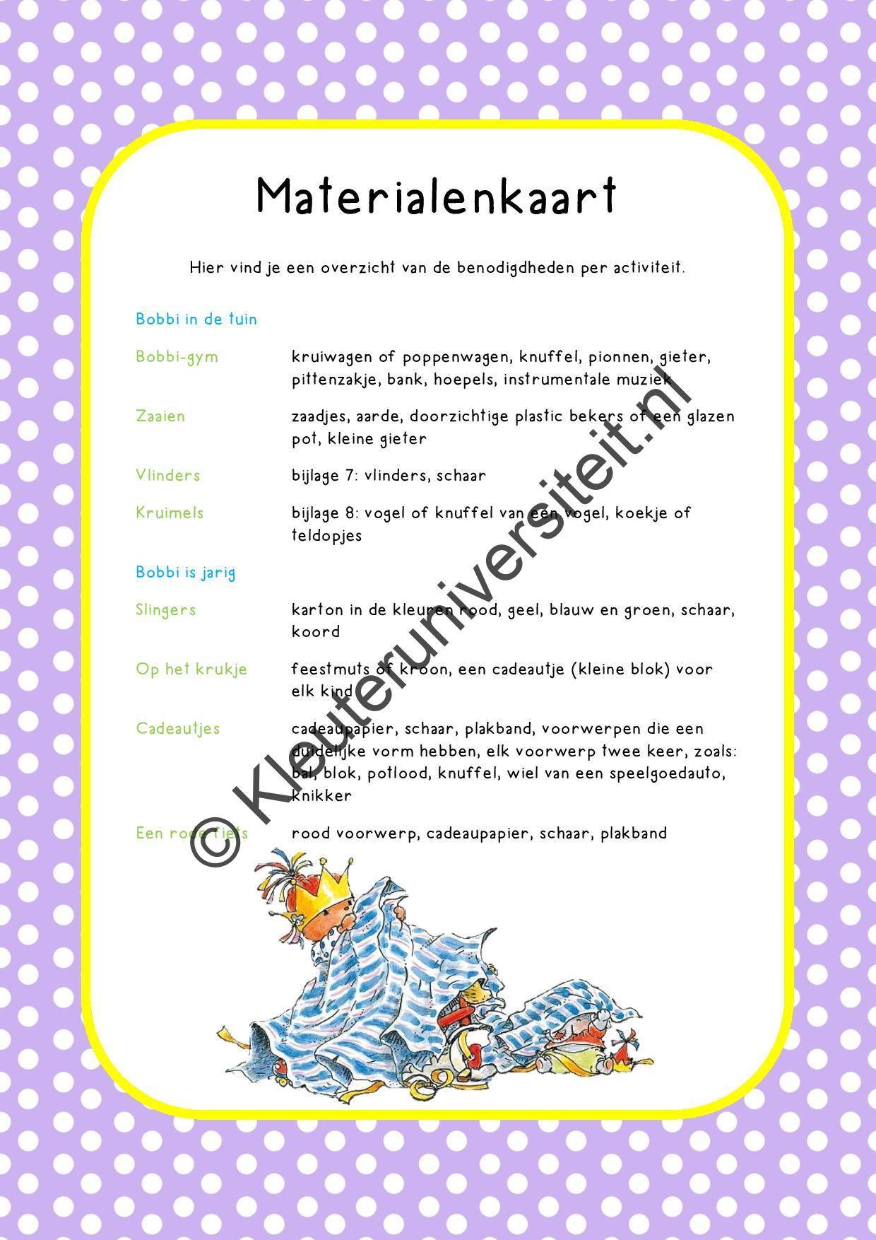 Vier Moeder- en / of Vaderdag met Bobbi! Doe samen met hem en zijn mama en papa leuke dingen. Dit pakket bevat tien kringactiviteiten voor Moederdag en tien kringactiviteiten voor Vaderdag. Ze zijn los van elkaar te gebruiken. De activiteitenkaarten voor Moederdag hebben een roze achtergrond en de kaarten voor Vaderdag een blauw/groene. Hierna vind je drie suggesties voor een creatief Moeder- of Vaderdag werkje. De activiteiten zijn geschreven bij de boeken Bobbi de allerliefste mama en Bobbi de allerliefste papa van Monica Maas.
