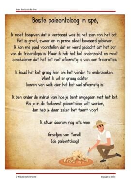 Met Boer Boris beleef je altijd een spannend avontuur, maar wanneer je dan (net als Boer Boris) een dino bot vindt in de zandbak komt het avontuur echt tot leven! Een heel mooi project wat ons thema Dino’s echt heeft verrijkt en verdiept, mede door de vraagsleutelbotten. Binnen dit thema wordt het boek echt gebruikt als leidraad. Je volgt het verhaal van begin tot het einde, met opdrachten die ik zelf niet had kunnen verzinnen. Er komen veel doelen aan bod binnen verschillende vakgebieden. Dit project raad ik iedereen aan die over Dino’s gaat werken!