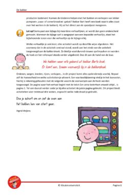 Dit project bevat reken-, taal-, beweeg-, beeldende-, muziek- en techniekactiviteiten bij het prentenboek ‘De bakker’ (of de nieuwe boekbundel: ‘De Kok en de bakker’) van Liesbet Slegers en is het gehele jaar in te zetten. Naast de basisverhaallijn zijn er voor zowel de periode tijdens Sinterklaas als voor alle seizoenen extra verhaallijnen toegevoegd, waarmee je dit project op ieder moment van het jaar kunt inzetten. Let op: rondom dit prentenboek is eerder een project van Kleuteruniversiteit verschenen met dezelfde titel (productnummer KU20150100). Dat oude project is inmiddels niet meer beschikbaar, en dit nieuwe project uit 2024 is volledig anders met nieuwe lessen.