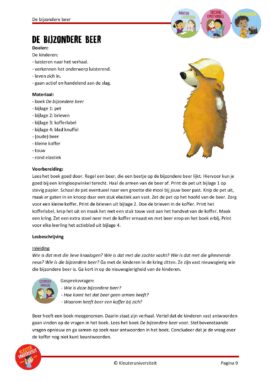 In dit project komt de bijzondere beer op bezoek in de klas en neemt hij de kinderen mee in zijn verhaal. De kinderen ontdekken wat de beer, wat henzelf en wat hun eigen favoriete knuffel bijzonder maakt. Ze ontdekken: je bent bijzonder zoals je bent. Een mooi project om in te zetten voor groepsvorming, bijvoorbeeld tijdens de gouden weken. Daarnaast neemt de bijzondere beer de kinderen mee op reis. Hij vertelt over zijn leven: van de ontwerptekening tot maken in de fabriek, van de vrachtauto tot in de speelgoedwinkel en uiteindelijk thuis bij Noor. De kinderen ontwerpen hun eigen bijzondere klassenknuffel, want de bijzondere beer wil natuurlijk weer terug naar Noor.