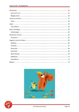 Het prentenboek ‘De Blaadjesdief’ van Alice Hemming en Nicola Slater is een grappig verhaal over een eekhoorn die verbaasd is over de wisseling van de seizoenen. Dit project bij dat prentenboek bevat activiteiten voor taal, rekenen, muziek, spel- en beweging, Engels, natuur en techniek, mindfulness en suggesties voor de hoeken. Hiermee kun je vier weken aan de slag.