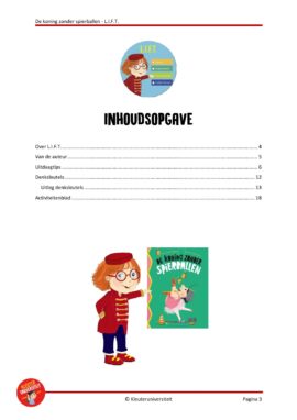 L.I.F.T. staat voor Leren, Inspireren, Fantaseren en Talenteren en is ontwikkeld om kinderen creatief en flexibel te laten denken. Ideaal voor kinderen met een ontwikkelingsvoorsprong, al mag iedereen in de lift stappen. In dit L.I.F.T. product bij het boek ‘De koning zonder spierballen’ van Levina van Teunenbroek, vind je zes uitdaagtips, twaalf Denksleutel-opdrachten en een activiteitenblad.