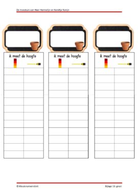 Naast het project hadden we een moestuinhoek in de klas (in plaats van de zandtafel) en natuurlijk hebben de kinderen hun eigen plantjes gepland. Ook voor het hoekenwerk zijn activiteiten en bijlages opgenomen. Zoals een werkblad voor het meten van de groeiende zaadjes.