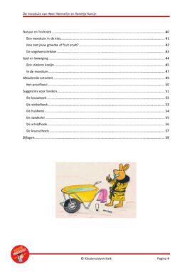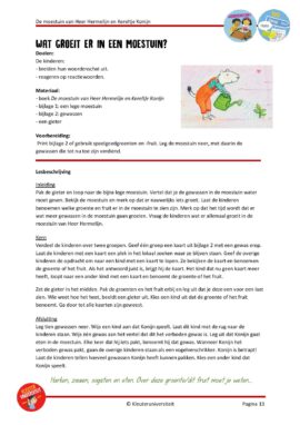 Een heel rijk project waar je zoveel kanten mee op kan! Naast het zaaien en oogsten van de moestuin zit loopt er nog een verhaallijn onder, namelijk dat Kereltje Konijn steeds niet het geduld heeft om te wachten op de oogst en in de nacht zelf op pad gaat in de moestuin van Heer Hermelijn. Er zijn in dit project ook activiteiten beschreven om die verhaallijn naar boven te halen.