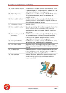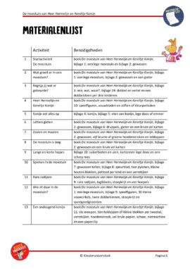 De pagina’s in het boek zijn niet genummerd. De pagina waar het verhaal begint met de tekst Heer Hermelijn begroette de dag… is pagina 1. Tel van daaruit verder zodat je bij elke activiteit de juiste pagina gebruikt. Bij elke activiteit staat een afbeelding van de juiste pagina afgebeeld.