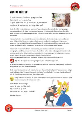 Dit project bevat activiteiten voor taal, rekenen, muziek en spel- en beweging bij het boek ‘De prins zonder billen‘ van Levina van Teunenbroek en Charlotte Bruijn. Daarnaast vind je in het pakket een creatieve activiteit, een suggestie voor de spelhoek, twee gezelschapsspellen en kralenplankvoorbeelden. Met dit project kun je drie weken aan de slag.