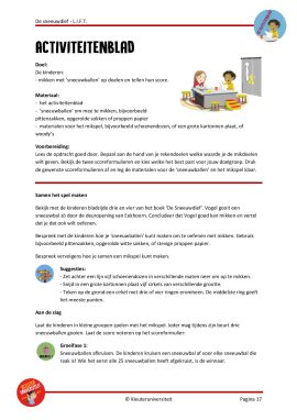 In dit L.I.F.T. pakket gaan de kinderen actief aan de slag. Ze oefenen hun geheugen met verschillende verstopspelletjes, lossen een rekenprobleem tekenend op en maken zelf een sneeuwdier. Natuurlijk zijn er ook weer 12 prikkelende denksleutelvragen en opdrachten te vinden. Bij het activiteitenblad hoort een leuk mikspel met sneeuwballen, de kinderen tellen uiteraard zelf hun score bij elkaar. Veel plezier met de Sneeuwdief!