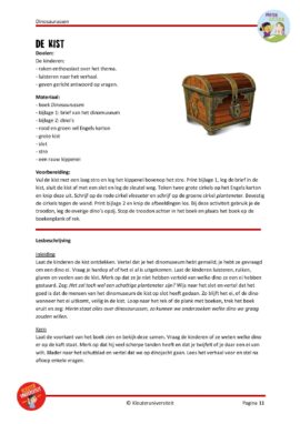 Gedurende het project zorgen de kinderen voor de kist; ze maken waarschuwingsborden, warmteconstructies en een val voor ongewenste dino’s. Ga mee op dinojacht, richt een museum in, onderzoek drollen, vind fossielen, meet hoe lang de bek is van een liopleurodon, ervaar hoe groot de pootafdruk van een diplodocus is, voer de vleeseters en ga in groepen op rijmjacht … roooooar!