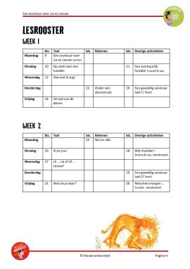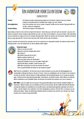 Ga mee op avontuur met dit project bij het boek ‘Een avontuur voor Lia en Leeuw’ van Al Rodin met lesaanbod voor drie tot vier weken. Het project bevat activiteiten voor taal, rekenen, muziek, de creatieve en sociaal-emotionele ontwikkeling, natuur, drama en spel en beweging. Daarnaast bevat het drie avontuurlijke spellen.