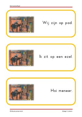 Het kerstfeest komt eraan! In dit project word je meegenomen in het klassieke, Christelijke kerstverhaal, waarbij de geboorte van Jezus centraal staat. Iedere activiteit is gekoppeld aan een ander persoon uit het Kerstverhaal. Bij Jozef gaan de kinderen aan de slag met het hakken van planken en daarmee met het hakken van woorden. En bij de Engel gaan de kinderen aan de slag met het herhalen van klanken, woorden en zinnen. De activiteit, die hoorde bij de ezel, vonden de kinderen erg leuk om te doen. Voor het kopen van een ezel moet je vier verschillende munten hebben. De kinderen moeten de munten met elkaar ruilen, net zo lang, totdat ze vier verschillende hebben. We hebben deze activiteit meerdere keren gedaan, omdat het nog best lastig was! Ook de activiteit ‘Bij de herberg’ vonden de kinderen erg leuk. Ze waren erg fanatiek bij het bedenken van woorden bij de categorieën. Iedere herberg had zijn eigen categorie. De herbergen zaten helaas allemaal vol! De rode draad in dit project is een aftelkalender naar kerst. Je kunt dit project dus heel goed inzetten in de aanloop naar het kerstfeest op school! Een echte aanrader!