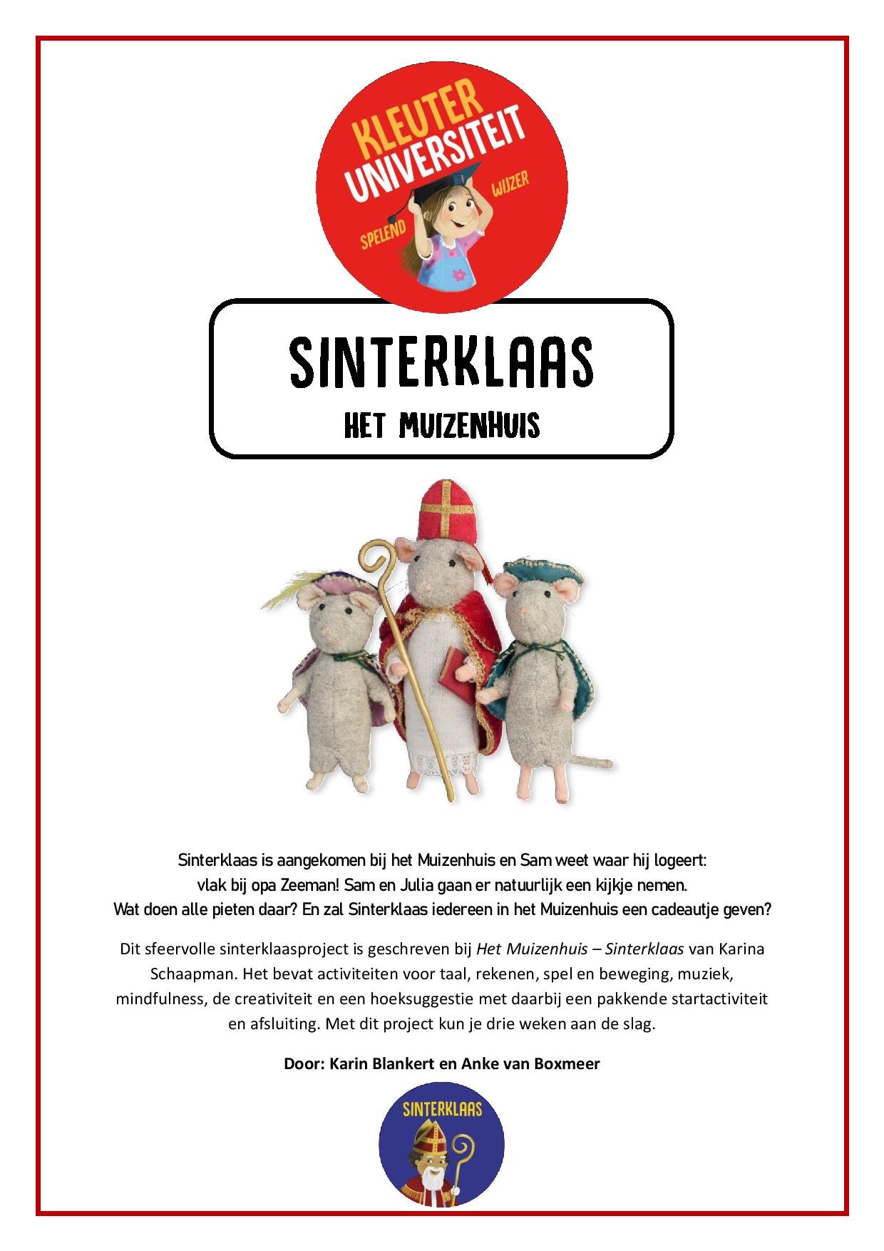 Dit sfeervolle sinterklaasproject is geschreven bij het boek ‘Het Muizenhuis – Sinterklaas’ van Karina Schaapman. Het bevat activiteiten voor taal, rekenen, spel en beweging, muziek, mindfulness, de creativiteit en een hoeksuggestie met daarbij een pakkende startactiviteit en afsluiting. Met dit project kun je drie weken aan de slag.