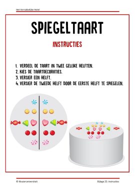 Rode draad: In ruil voor alle hulp wil Ruben zijn geheime recept delen. Na elke activiteit kunnen de kinderen een van de benodigdheden verdienen en uiteindelijk het recept ontdekken. Plak de afbeeldingen van bijlage 3 op een cirkel en hang deze in de startactiviteit met wasknijpers op aan een lijn. Zorg dat de afbeeldingen richting de muur hangen. Verzamel alle benodigdheden die te zien zijn op de afbeeldingen. Laat de kinderen na elke activiteit een cirkel omdraaien en benoemen wat zij hebben verdiend. Bedenk samen een plek voor de benodigdheden. Het project wordt afgesloten met een groot bal waar kinderen hun zelfgemaakte appeltaarten mogen eten.