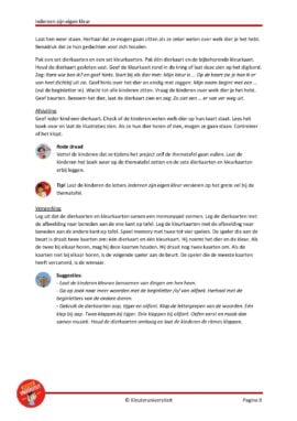 Rode draad: De kinderen bouwen gedurende het project zelf een thematafel op. Na elke activiteit wordt de thematafel verder uitgebreid met dingen die ze geleerd en gemaakt hebben. Zo gaat steeds meer leven welke vaardigheden ze opdoen, hoe ze groeien en waar ze trots op mogen zijn. Ook in de klas heeft iedereen zijn eigen kleur!