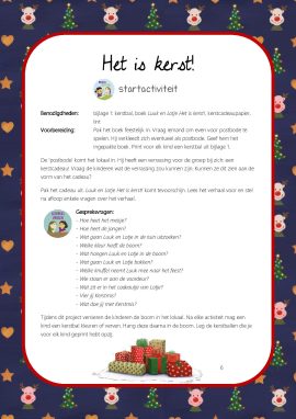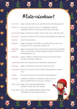 Dit pakket bevat vijftien (kring)activiteiten voor rekenen en taal, een muziekles en twee spellen om samen te spelen bij het boek ‘Luuk en Lotje Het is kerst!’ van Ruth Wielockx. De activiteiten zijn te gebruiken op de peuterspeelzaal, in de eerste kleuterklas, het asielzoekerscentrum, het speciaal (basis)onderwijs of op het kinderdagverblijf.