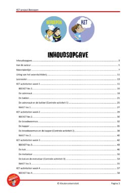 Wauw, een absolute fan van de KET-projecten. We gebruiken de KET-projecten voor leerlingen die extra ondersteuning nodig hebben in hun taalontwikkeling. Het fijne aan de KET-projecten is dat er een duidelijk opbouw in zit (zowel in elke week als in elke activiteit) . Met dit KET-project kun je 4 weken vooruit. We hebben het dit project ingezet tijdens de begeleide activiteit waarin we werkten met de kinderen die extra oefening hebben ten gunste van hun taalontwikkeling. Er wordt een link gelegd met het reguliere project “Beroepen” waardoor je de woorden die worden aangeboden vanuit het reguliere project , extra kan inoefenen met het KET-project. In elke activiteit vind je dan ook een startfase, KET-fase waarin je de woorden herhaaldelijk in een context aanbiedt en laat zien maar ook een doe-fase waardoor kinderen de woorden dus ook kun oefenen/ lijfelijk ervaren.