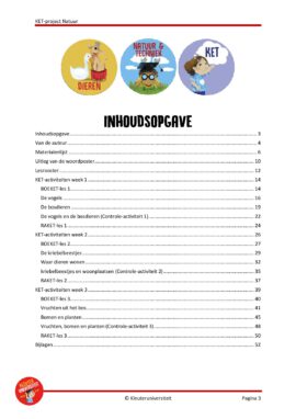 Dit project is aanvullend te gebruiken bij het reguliere project Natuur van Kleuteruniversiteit en biedt extra taalactiviteiten voor Kinderen met een Extra Taalbehoefte (KET).