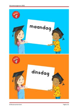 Deze set met handige kaarten draagt bij aan een goed klassenmanagement. De set bevat WC kaarten, speelgoedgeld, dagen van de week kaarten, maandkaarten en 80 afbeeldingen voor naamkaartjes (objecten, dieren en figuren). Alle illustraties zijn gemaakt door Margot Senden.
