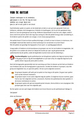 De Koningsspelen zijn een sportief Oranjefeest waar elk jaar veel scholen aan meedoen. De dag bestaat uit sportieve activiteiten die kinderen laten ervaren dat bewegen belangrijk en vooral leuk is. Dit pakket bevat 21 activiteiten gebaseerd op oud-Hollandse spelen. Ze staan beschreven op spellenkaarten waarmee je, na het verzamelen van de materialen, direct aan de slag kunt. Fijne Koningsspelen!