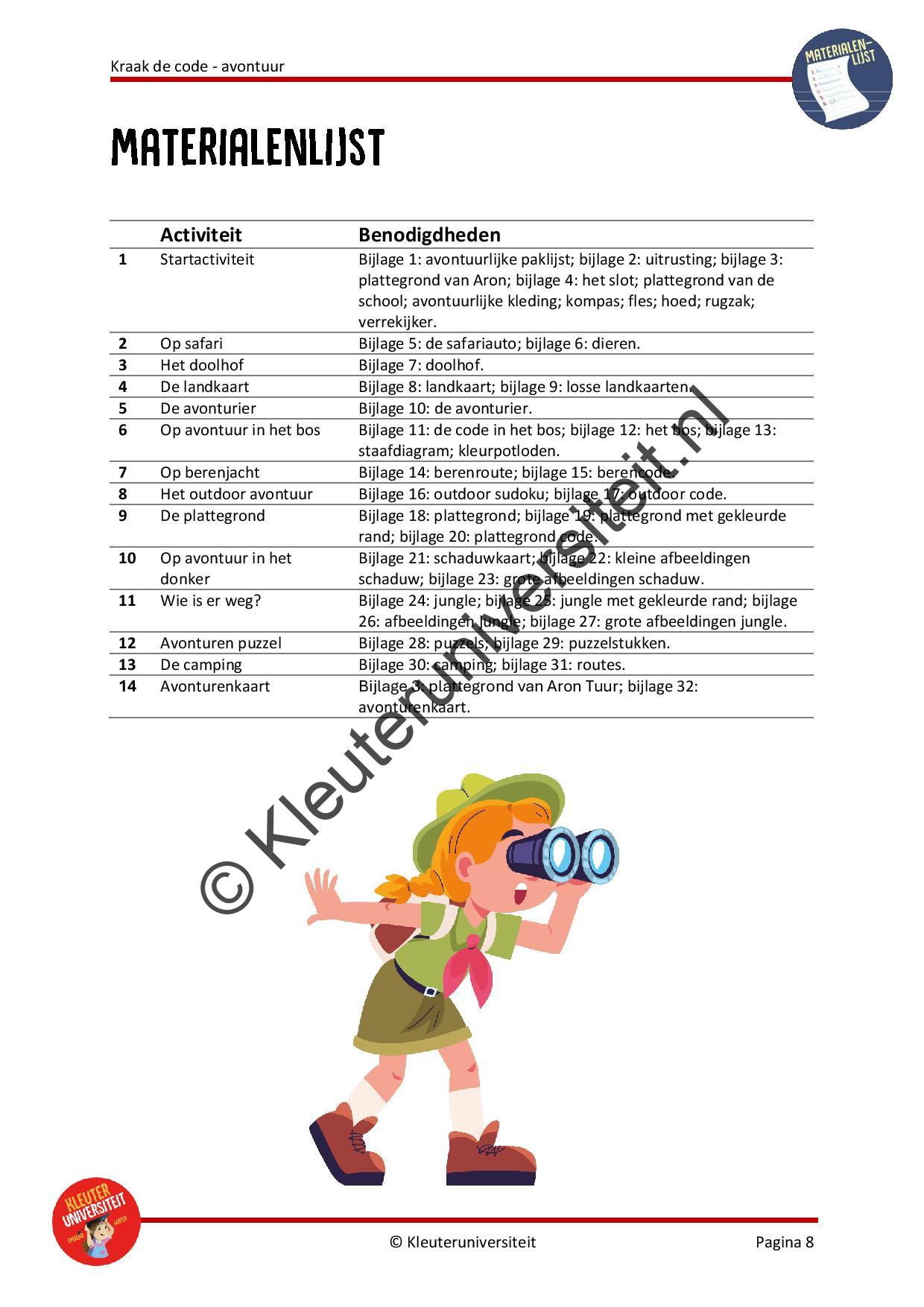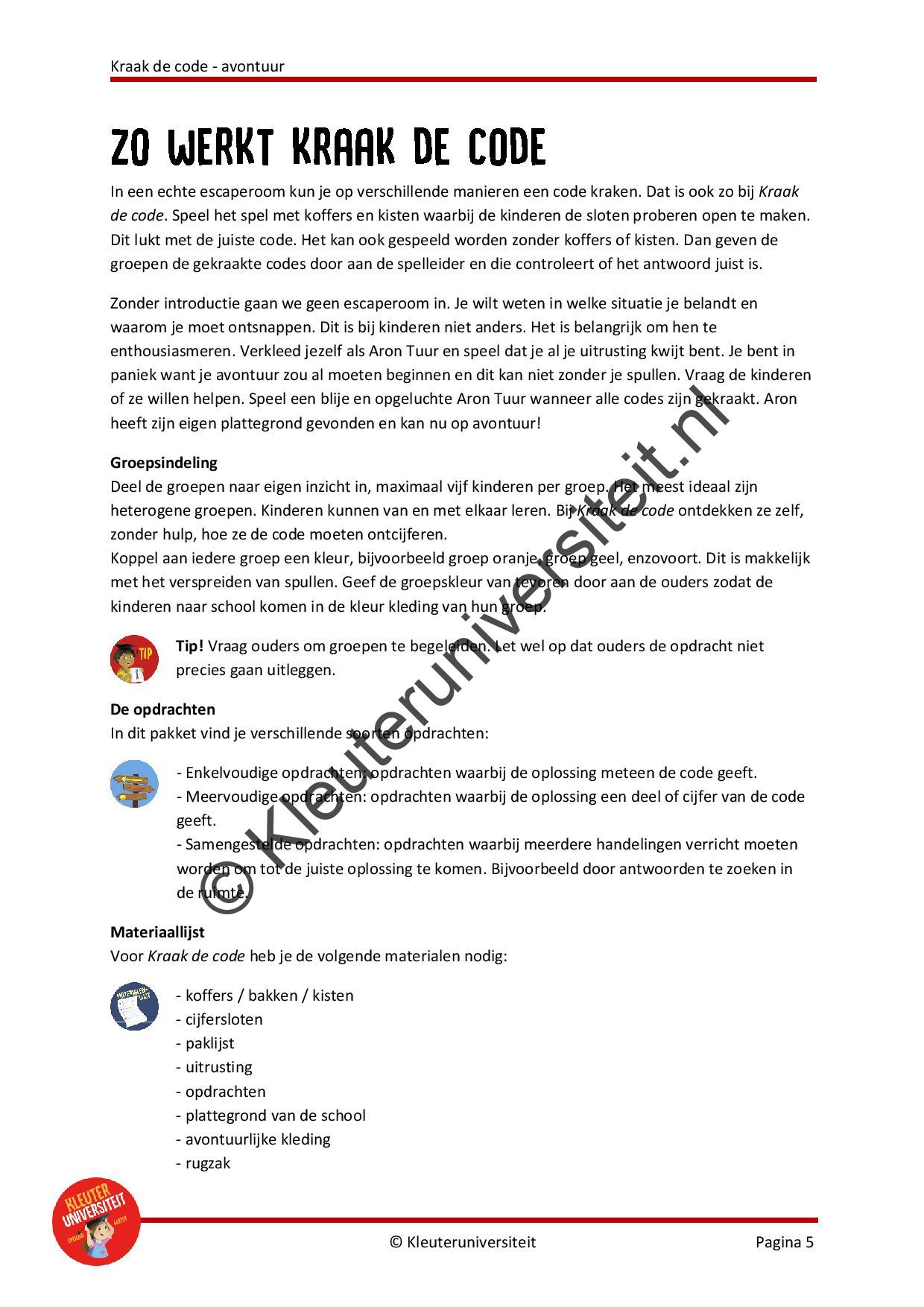 Met dit escaperoom spellenpakket laat je kinderen ‘outside the box’ denken, uitdagingen oplossen en codes kraken om de uitrusting van Aron Tuur terug te vinden. Lukt dit, dan mogen ze mee op avontuur.