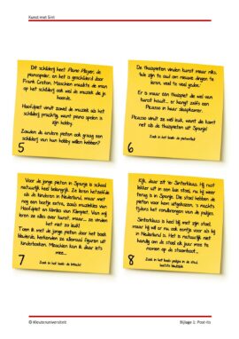De start en afsluiting van de rode draad wordt verderop in het project uitgelegd. Print vooraf de Post-its uit bijlage 1 en gebruik deze bij de gekozen kunstlessen.