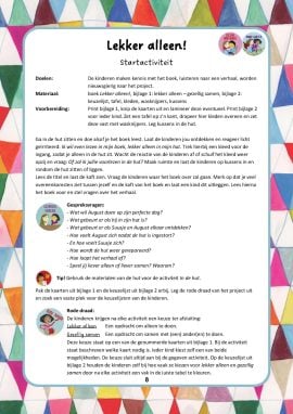 Dit project is geschreven bij het prentenboek ‘Lekker alleen!‘ van Miriam Bos en bevat activiteiten voor rekenen, taal, muziek, samenwerken, bewegen en sociaal-emotionele vorming. Daarnaast bevat het project vier spellen die op elk moment inzetbaar zijn. Na elke activiteit maken de kinderen een keuze: Spelen ze lekker alleen of gezellig samen?