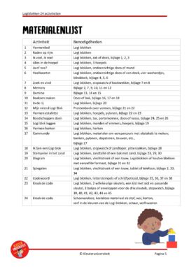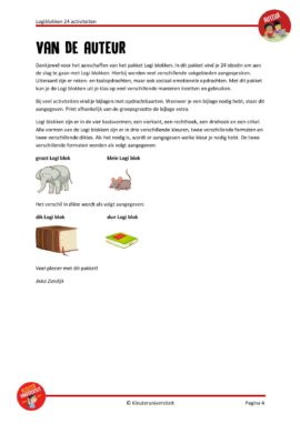In dit pakket vind je 24 ideeën om aan de slag te gaan met Logi blokken. Hierbij worden veel verschillende vakgebieden aangesproken. Uiteraard zijn er reken- en taalopdrachten, maar ook sociaal-emotionele opdrachten. Met dit pakket kun je de Logi blokken uit je klas op veel verschillende manieren inzetten en gebruiken.
