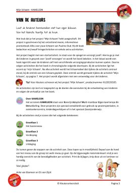 Het acroniem KAMELEON staat voor Kansrijk Adaptief Multi-inzetbaar Eigen Leertempo En Ontwikkeling. Deze projecten zijn speciaal ontwikkeld voor gebruik op peuterspeelzalen, in asielzoekerscentra, kinderdagverblijven of in het speciaal (basis)onderwijs. De activiteiten zijn kort en toegespitst op de doelen die aansluiten bij de ontwikkeling van kinderen en volgen de verhaallijn van het boek. Bij de activiteiten vind je iconen die het volgende betekenen: Groeifase 1 – Het basisniveau, Groeifase 2 – Verdieping, Groeifase 3 – Uitdaging.