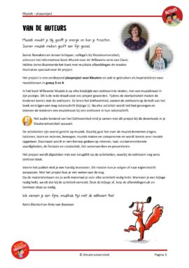 Zing, luister, beweeg, noteer en maak muziek met de activiteiten uit dit project. Dit verdiepende plusproject voor kleuters of inspiratiebron voor muzieklessen in groep 3 en 4 is geschreven bij het informatieve boek ‘Willewete Muziek‘ van Sanne Ramakers, Jeroen Schipper en Hélène Jorna.