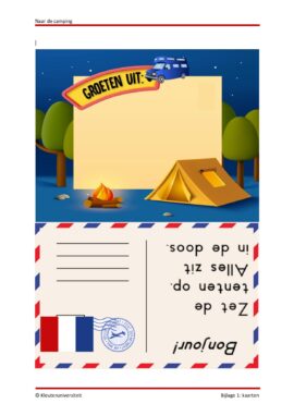 Dit project is ideaal om het schooljaar op een leuke manier af te sluiten! De leerlingen bouwen stap voor stap aan een eigen camping. Iedere dag ontvangen zij een kaart uit een ander land met een bijbehorende opdracht. Door het uitvoeren van deze opdrachten wordt de camping stapsgewijs uitgebreid, tot er een complete camping staat. De leerlingen waren iedere keer enthousiast bij het ontvangen van een nieuwe kaart, nieuwsgierig naar de volgende opdracht en gemotiveerd om deze uit te voeren. Dit project is een echte aanrader en gaan we zeker nog eens doen!