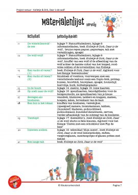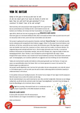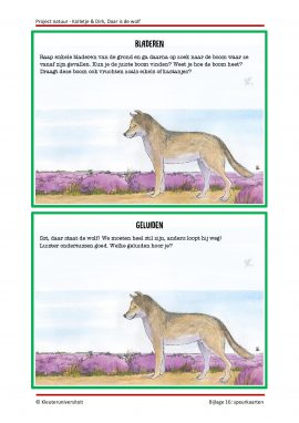 Ga met Kolletje en Dirk mee, op zoek naar de wolf! Dit natuurproject is geschreven bij het prentenboek ‘Kolletje & Dirk, Daar is de wolf‘ van Pieter Feller en Natascha Stenvert. Het bevat taal- en rekenactiviteiten, een creatieve activiteit, een spel- en bewegingsles, een muziekles en suggesties voor natuuronderwijs. Met dit project kun je ongeveer drie weken aan de slag.