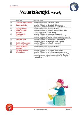 Voorin het project vind je een lesrooster voor vier weken. Op de materialenlijst kun je vinden welk materiaal en welke bijlagen je voor elke activiteit nodig hebt. Gebruik bij voorkeur echte materialen. Wanneer je een bijlage nodig hebt, druk je deze af. Knip de afbeeldingen los en lamineer deze indien nodig.