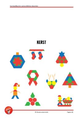 Een pakket met 26 voorbeeldkaarten voor patroonblokken in het thema Sinterklaas en Kerst, in drie varianten voor verschillende niveaus: in kleur zonder lijnen, zwart-wit met lijnen en als omtrek. Van elk voorbeeld zijn er steeds drie kaarten: