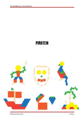 Een pakket met 18 voorbeeldkaarten voor patroonblokken in het thema geschiedenis, in drie varianten voor verschillende niveaus: in kleur zonder lijnen, zwart-wit met lijnen en als omtrek. In dit pakket vind je onder andere de thema’s ridders, piraten en dinosaurussen.