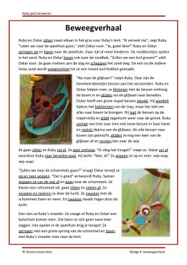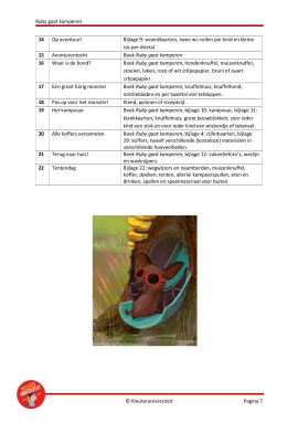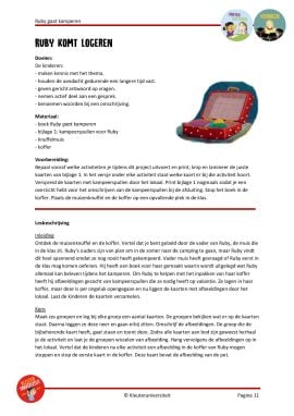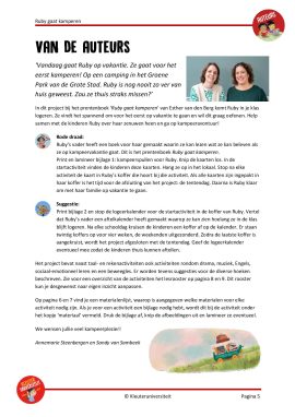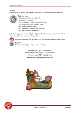 Ruby vindt het spannend om voor de eerste keer op vakantie te gaan. Daarom komt ze oefenen met kamperen in de klas en beleef je samen met haar allerlei kampeeravonturen. Dit zeer goedgevulde project bij het boek ‘Ruby gaat kamperen’ van Esther van den Berg bevat een gevarieerd aanbod waarmee je vier weken aan de slag kunt.