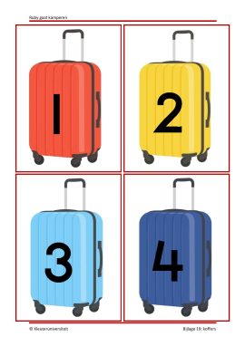 Suggestie: Print bijlage 2 en stop de logeerkalender voor de startactiviteit in de koffer van Ruby. Vertel dat Ruby’s vader een aftelkalender heeft gemaakt waarop ze kan zien hoelang ze in de klas blijft logeren. Na elke schooldag kruisen de kinderen een koffer af op de kalender. Er staan twintig koffers op voor vier weken, de weekenden uitgezonderd. Zodra de laatste koffer is aangekruist, wordt het project afgesloten met de tentendag. Geef de logeerkalender eventueel mee zodat de kinderen thuis kunnen aftellen.