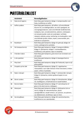 Op pagina 6 en 7 vind je een materialenlijst, waarop is aangegeven welke materialen voor elke activiteit nodig zijn. Als je voor een activiteit een bijlage nodig hebt, wordt dit bij de activiteit onder het kopje ‘materiaal’ vermeld. Druk de bijlage af, knip de afbeeldingen uit en lamineer ze eventueel.