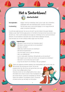 Wat leuk dat je het sinterklaasfeest viert met Kleuteruniversiteit! Dit project is geschreven bij het sfeervolle prentenboek ‘Luuk en Lotje – Het is Sinterklaas’ van Ruth Wielockx. Het project begint met een startactiviteit. De kinderen ontvangen een brief en pakje van Sinterklaas. Hij laat weten dat hij naar de kinderen op weg is en nodigt ze uit alvast een verhaal over de intocht te lezen. Het boek komt tevoorschijn en wordt voorgelezen. In het verhaal gaan Luuk en Lotje samen met papa en mama naar de intocht, ze maken een aftelkalender, spelen zelf ‘sinterklaasje’ en zetten hun schoen. Tijdens de activiteiten die hierna volgen, staan verschillende aspecten van het sinterklaasfeest centraal. Na elke activiteit worden er een of meerdere schoenen gezet. Aan het eind van het project staat er van elk kind een (zelfgemaakte) schoen in het lokaal en wordt er flink gezongen. Zou Sinterklaas komen?