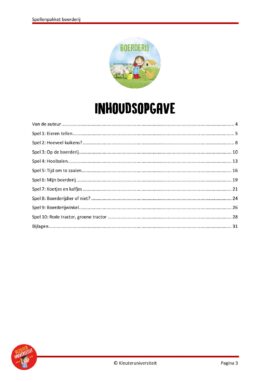 Dit pakket rondom het thema boerderij bevat tien kleurrijke spellen met meerdere spelmogelijkheden en gevarieerd doelenaanbod.