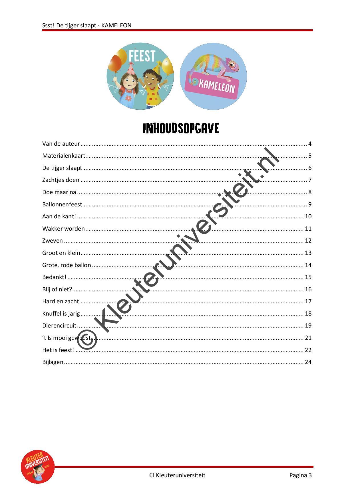 Het acroniem KAMELEON staat voor Kansrijk Adaptief Multi-inzetbaar Eigen Leertempo En Ontwikkeling. Deze projecten zijn speciaal ontwikkeld voor gebruik op peuterspeelzalen, in asielzoekerscentra, kinderdagverblijven of in het speciaal (basis)onderwijs. De activiteiten zijn kort en toegespitst op de doelen die aansluiten bij de ontwikkeling van kinderen en volgen de verhaallijn van het boek. Bij de activiteiten vind je iconen die het volgende betekenen: Groeifase 1 – Het basisniveau, Groeifase 2 – Verdieping, Groeifase 3 – Uitdaging.