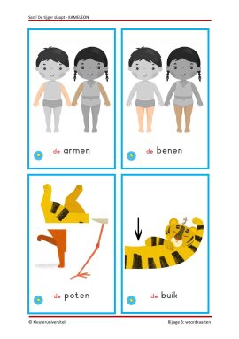 Dit project bevat 16 activiteiten en suggesties voor spel in de hoeken bij het boek ‘Ssst! De tijger slaapt’ van Britta Teckentrup. KAMELEON projecten zijn te gebruiken op de peuterspeelzaal, in de eerste kleuterklas, het asielzoekerscentrum, het speciaal (basis)onderwijs of op het kinderdagverblijf.