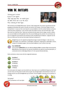 Het acroniem KAMELEON staat voor Kansrijk Adaptief Multi-inzetbaar Eigen Leertempo En Ontwikkeling. Deze projecten zijn speciaal ontwikkeld voor gebruik op peuterspeelzalen, in asielzoekerscentra, kinderdagverblijven of in het speciaal (basis)onderwijs. De activiteiten zijn kort en toegespitst op de doelen die aansluiten bij de ontwikkeling van kinderen en volgen de verhaallijn van het boek. Bij de activiteiten vind je iconen die het volgende betekenen: Groeifase 1 – Het basisniveau, Groeifase 2 – Verdieping, Groeifase 3 – Uitdaging.